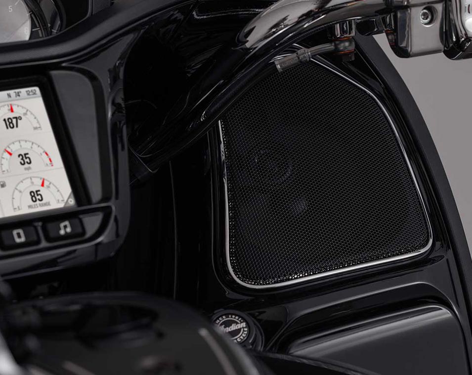 | Infotainment | Ride Command med 7-tums pekskärm: 7-tums display med klocka, lufttemperatur, riktning, display för ljudanläggning; karta / GPS-navigering; Bluetooth-status för telefon och headset; fordonsstatus (däcktryck, voltmätare, motortimmar, oljebyte); motorinfo (hastighet, bränslenivå, varvtal, växelläge); aktuella fordonsdata; distans, körtid, ankomsttid, altitud, höjdskillnad); tripmätare; körlägesindikator; skärmljusstyrka; felavläsningsdisplay; Apple CarPlay-integrering. |