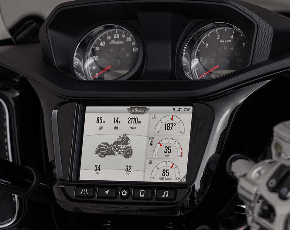 | Standardutrustning | Ride Command med 7-tums pekskärmGPS-navigator och integrerad Apple CarPlay. Smart lean-teknologi, valbara körlägen; Hårda låsbara packväskor; Brembo-bromsar; 68,13 liter packutrymme; ABS; Nyckellös tändning; Rammonterad kåpa; Justerbara luftventiler i kåpan; Elektriskt höj och sänkbart kåpglas; Justerbara leftventiler; 12V laddport |