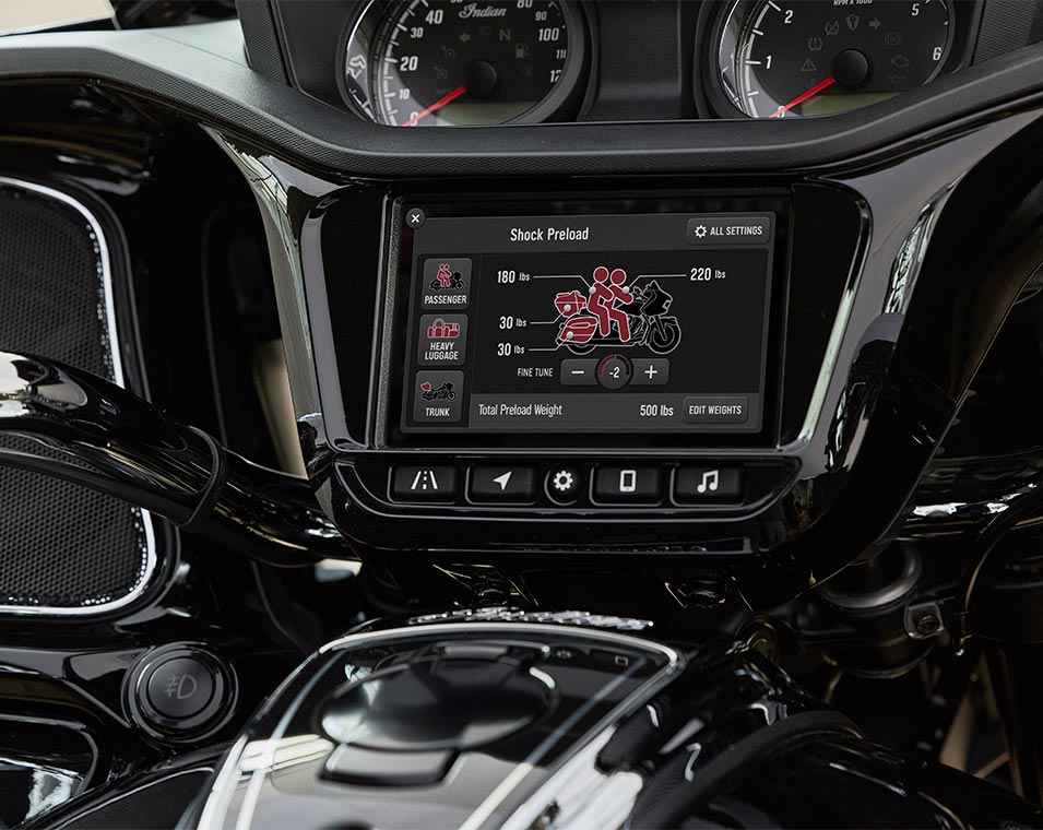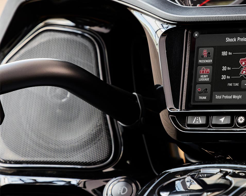 | Standardutrustning | Smart Lean teknologi; Bakstötdämpare med elektroniskt justerbar förspänning; Värmesadel; positionsljus integrerade i benkåpor; Packutrymme i benkåpor; Ride Command med 7 tums pekskärm med integrerad Apple CarPlay; Valbara körlägen; Bakre cylinderdeaktivering; Farthållare; Däcktrycksövervakning; Fjärrlåsning av packväskor och toppbox; 136 liter packutrymme; Störtbågar; Justerbara passagerarfotplattor; Brembo-bromsar; ABS; Nyckellös tändning; Rammonterad kåpa; Elektriskt höj och sänkbart kåpglas; Justerbara luftventiler i kåpan; Värmehandtag; 200 Watt ljudanläggning med AM/FM-radio, Bluetooth, USB, Smartphonekompabilitet, 12V laddport. |