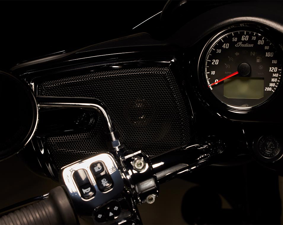 | Infotainment | Ride Command med 7-tums pekskärm: 7-tums display med klocka, lufttemperatur, riktning, display för ljudanläggning; Bluetooth-status för telefon och headset; fordonsstatus (däcktryck, voltmätare, motortimmar, oljebyte); motorinfo (hastighet, bränslenivå, varvtal, växelläge); aktuella fordonsdata; distans, körtid, ankomsttid, altitud, höjdskillnad); tripmätare; körlägesindikator; skärmljusstyrka; felavläsningsdisplay; Apple CarPlay-integrering. |