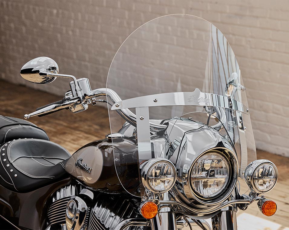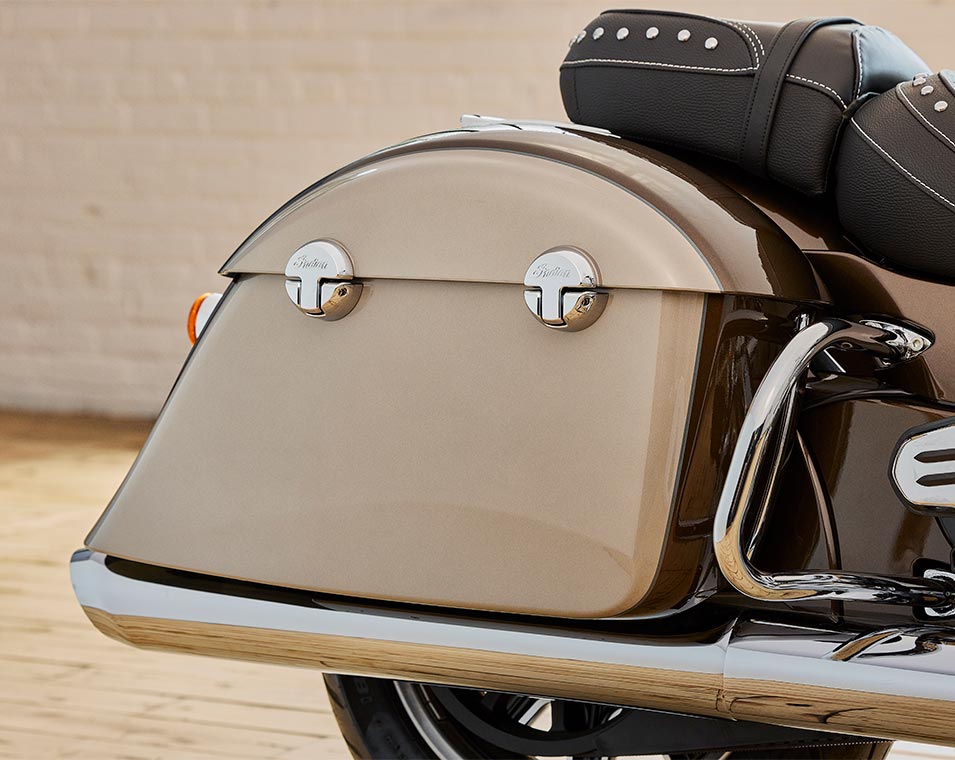 | Standardutrustning | Lexanruta med snabbfästen; Vinylsadel; Hårda packväskor med fjärrlåsning; Störtbågar; Däcktrycksmätare; Extralysen; ABS; Farthållare; Nyckellös tändning; Indian® tankdekal; |