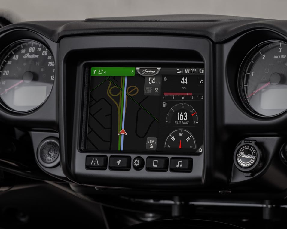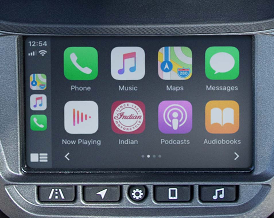 | Infotainment | Ride Command med 7-tums pekskärm: 7-tums display med klocka, lufttemperatur, riktning, display för ljudanläggning; Bluetooth-status för telefon och headset; fordonsstatus (däcktryck, voltmätare, motortimmar, oljebyte); motorinfo (hastighet, bränslenivå, varvtal, växelläge); aktuella fordonsdata; distans, körtid, ankomsttid, altitud, höjdskillnad); tripmätare; körlägesindikator; skärmljusstyrka; felavläsningsdisplay; Apple CarPlay-integrering. |