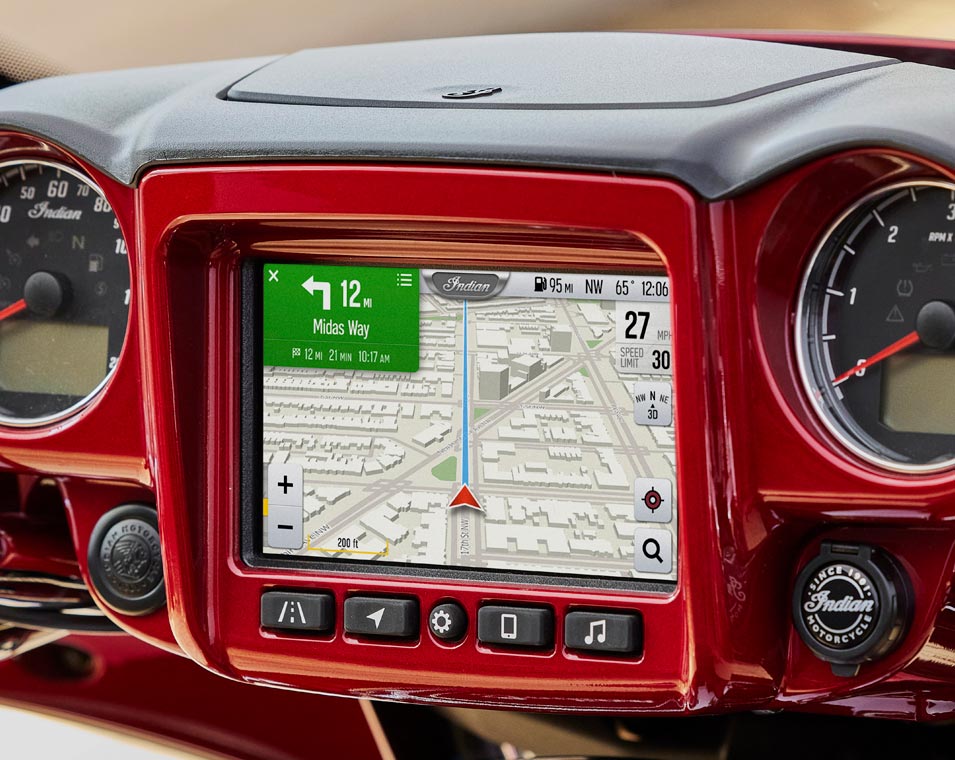 | Infotainment | Ride Command med 7-tums pekskärm: 7-tums display med klocka, lufttemperatur, riktning, display för ljudanläggning; Bluetooth-status för telefon och headset; fordonsstatus (däcktryck, voltmätare, motortimmar, oljebyte); motorinfo (hastighet, bränslenivå, varvtal, växelläge); aktuella fordonsdata; distans, körtid, ankomsttid, altitud, höjdskillnad); tripmätare; körlägesindikator; skärmljusstyrka; felavläsningsdisplay; Apple CarPlay-integrering. |