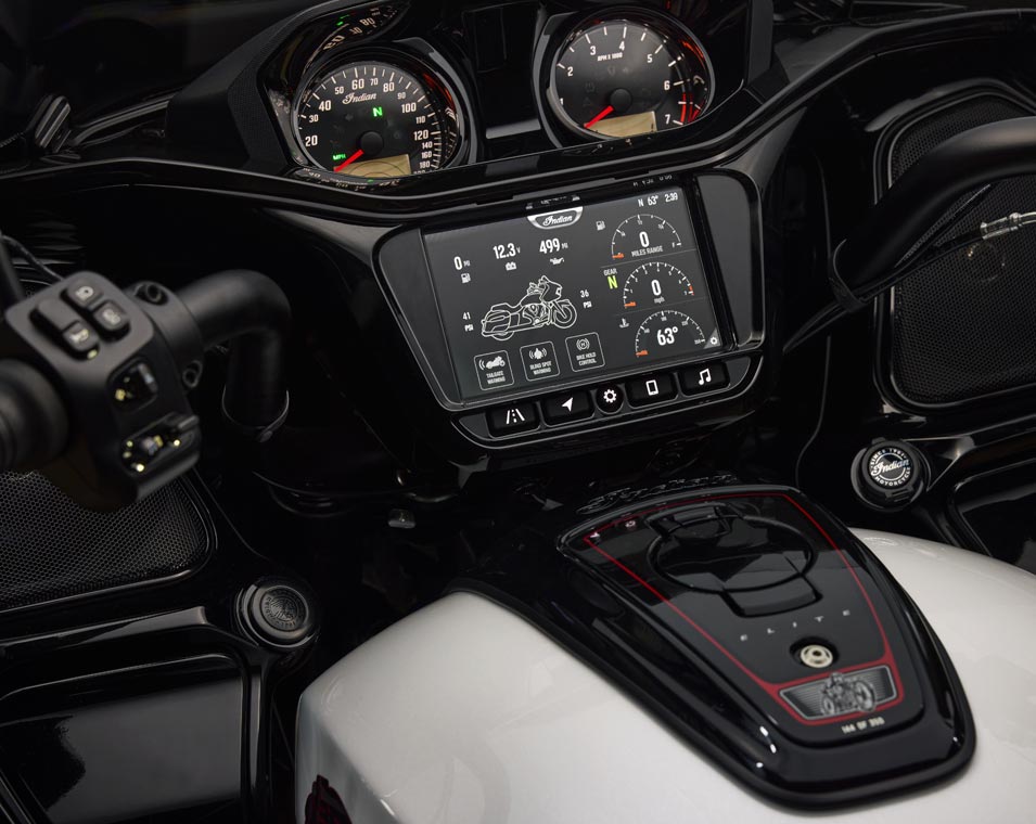 Fabriksinstallerad Ride Command + Telekom-enhet (TCU)för ett år gratiserbjuder sväng-för-sväng GPS-navigering, live väder och trafikkartor, Apple Car Play, Bike Health, Bike Locator, Intuitiv destinationssökning och mer. |